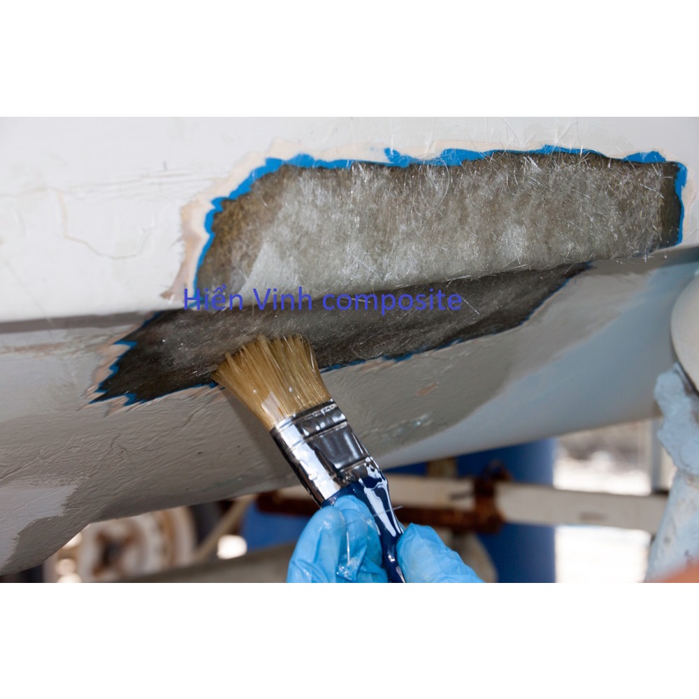 Combo 1kg keo composite (polyester), 1m sợi thủy tinh, xúc tác, bột đá, xilanh, cọ, chất chống rít mặt